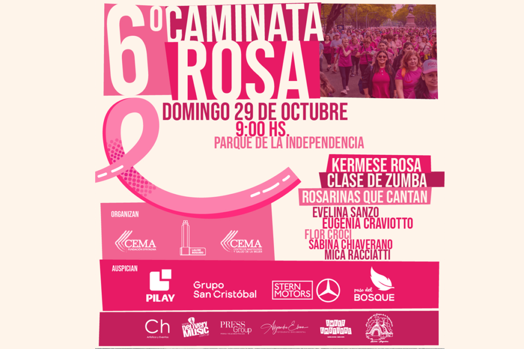 En el marco de las actividades que se desarrollan dentro de la Campaña Anual de Lucha Contra el Cáncer de Mama, el próximo domingo 29 de octubre desde las 9 se llevará adelante la sexta edición de la Caminata Rosa 2023. La convocatoria es libre y gratuita y será una jornada de shows y concientización en el Parque Independencia.