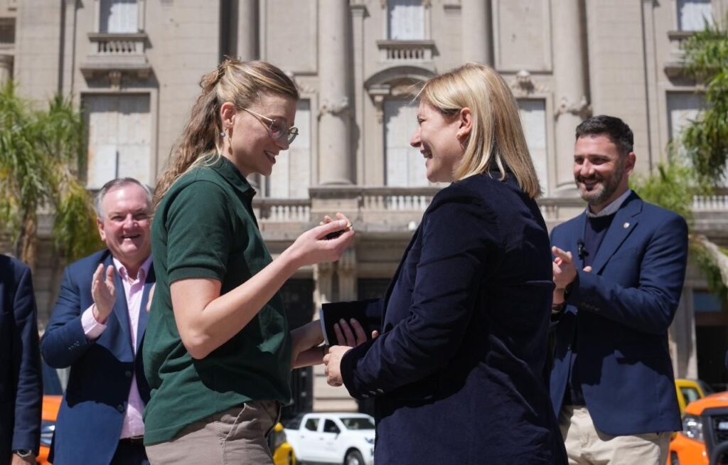 En la explanada de la Casa de Gobierno, la vicegobernadora Gisela Scaglia encabezó este martes la entrega de 22 camionetas y equipamiento destinados al combate de incendios forestales y rurales en distintas zonas de Santa Fe. La inversión, que supera los 2500 millones de pesos, forma parte del proyecto “Biodiversidad para la Acción Climática”, financiado con un crédito de la Agencia Francesa de Desarrollo (AFD).