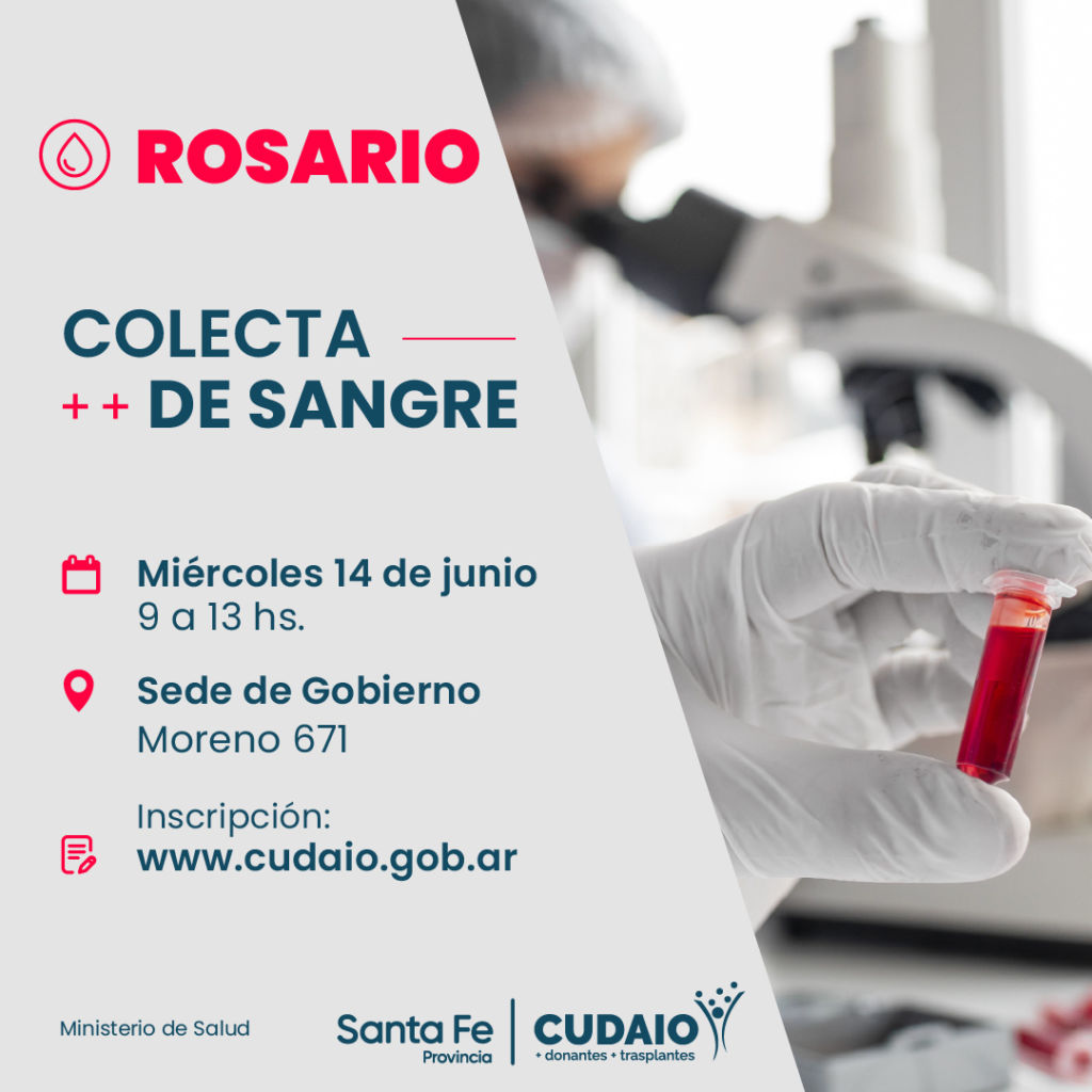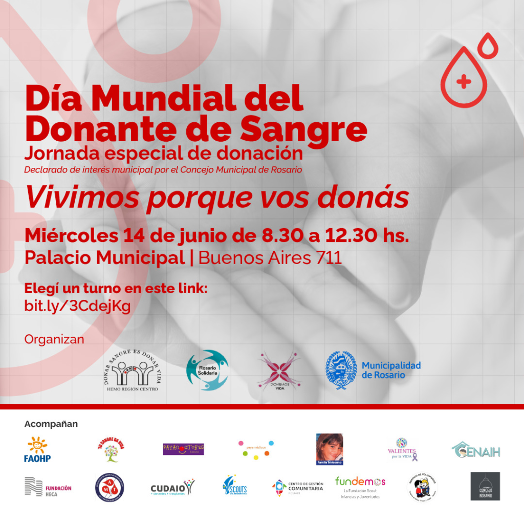 Cada 14 de junio se celebra el Día Mundial de la Donación de Sangre, un hito adoptado por la Organización Mundial de la Salud (OMS) como parte de sus campañas de promoción de la donación. Y ese día, este miércoles, será la colecta en Rosario, en la Sede de Gobernación de Rosario (por San Lorenzo al 1900) y también en el Palacio Municipal rosarino (Buenos Aires 711), ambas con inscripción previa.