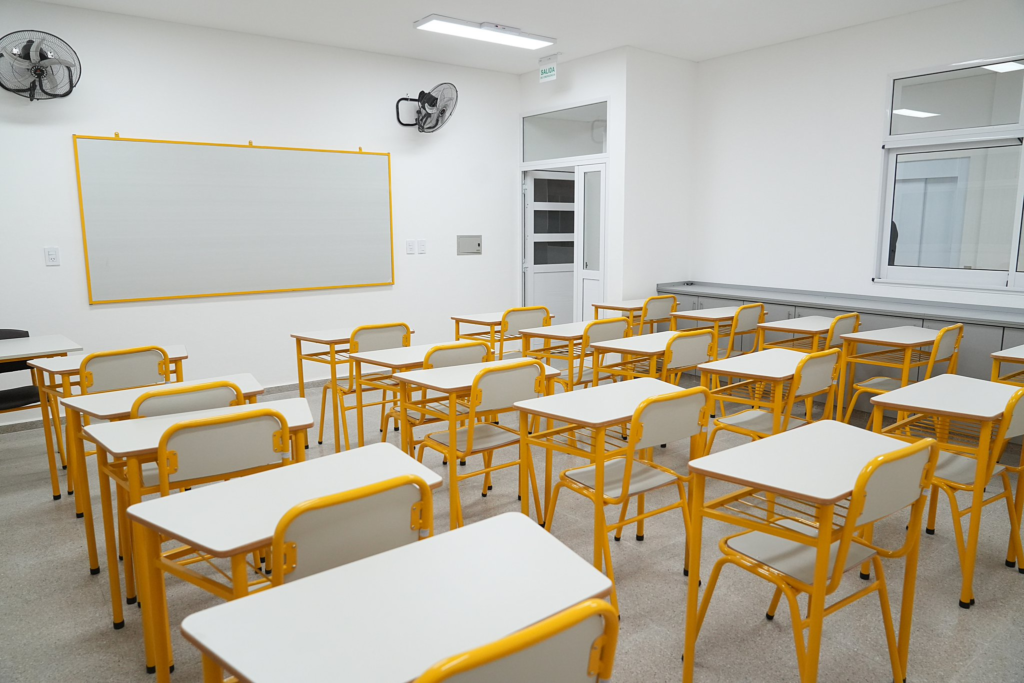 Funcionalidad para la Educación Técnica. El nuevo edificio cuenta en la planta baja con un SUM, cantina y aula de construcciones; y en la planta alta tres aulas nuevas, preceptoría y un núcleo sanitario moderno. Para garantizar la accesibilidad total, se instaló un ascensor de última generación y un sanitario adaptado para personas con discapacidad.