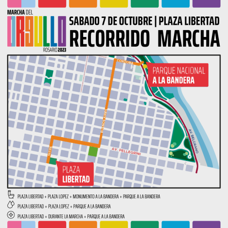 Una nueva edición de la Marcha del Orgullo se desarrollará durante la tarde de este sábado con epicentro en el Monumento Nacional a la Bandera. Desde las 13 en la Plaza Libertad (Mitre y Pasco) se realizará la concentración que contará con feria y que partirá a las 17 al Monumento, donde en el Parque Nacional a la Bandera se desplegarán shows en vivo.