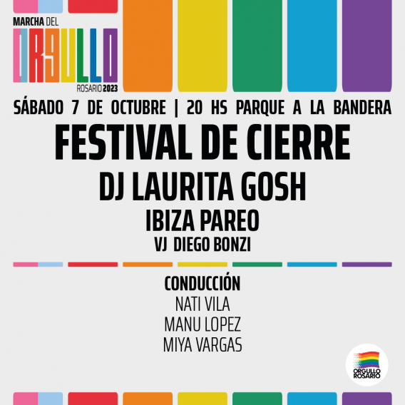 Con conducción de Lucas Miró, el primer tramo de la jornada tendrá la feria orgullosa y el escenario libertad en la plaza homónima con artistas como Beige Broklyn, Dardo Roth, Jerónimo Toquero, Maitea, Maxi con X y Milu Neri. Más tarde, bien entrada la noche en el Parque a la Bandera sonarán DJ Laurita Gosh e Ibiza Pareo como parte del festival de cierre.