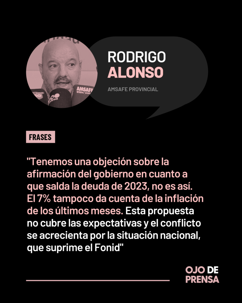 Alonso encuadró el estado de negociación en «un contexto muy preocupante, porque esta propuesta que no cubre las expectativas, y se acrecienta por la situación nacional, que suprime el Fonid (fondo de incentivo docente), el fortalecimiento alimentario de nuestras niñas y niños en la escuela, y la posibilidad de que en la escuela primaria se pueda incrementar esta hora extra para fortalecer el aprendizaje. Si Nación no envía estos fondos genera un conflicto y repercute negativamente», enumeró el gremialista docente.