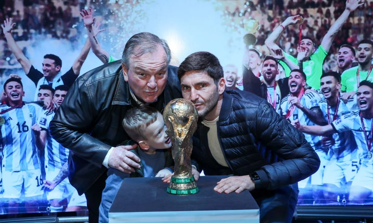 El gobernador Maximiliano Pullaro participó este lunes de la “Eternos Laureles”, la exposición de los trofeos ganados por la Selección Argentina de Fútbol que en esta oportunidad llegó a la ciudad de Ceres. Durante la jornada, los ceresinos pudieron acercarse hasta el Liceo Municipal y observar de manera gratuita la Copa del Mundo ganada por el combinado nacional en Qatar 2022, además de la Finalísima y la Copa América. De la actividad participaron también el senador por el departamento San Cristóbal, Felipe Michlig; el vicepresidente Ejecutivo de la Lotería de Santa Fe, Daniel Di Lena; la intendente de Ceres, Alejandra Dupouy, entre otras autoridades.