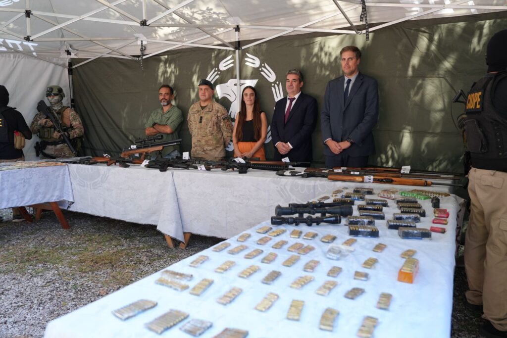 Armas de alto poder de fuego. Entre el armamento secuestrado se encontraron pistolas calibre 9 milímetros y calibre .40, además de armas de marcas como Glock, CZ y Tanfoglio, consideradas de última generación. También fueron incautados dos fusiles calibre 5.56 y .223, de fabricación china y norteamericana, escopetas y otras armas largas. Bertolotti remarcó que se trata de armamento de alto poder de fuego y poco habitual en este tipo de procedimientos. Por su parte, la subsecretaria de Inteligencia Criminal, Virginia Villar, sostuvo que el resultado de los operativos es producto de un trabajo sostenido en materia de análisis e inteligencia criminal.