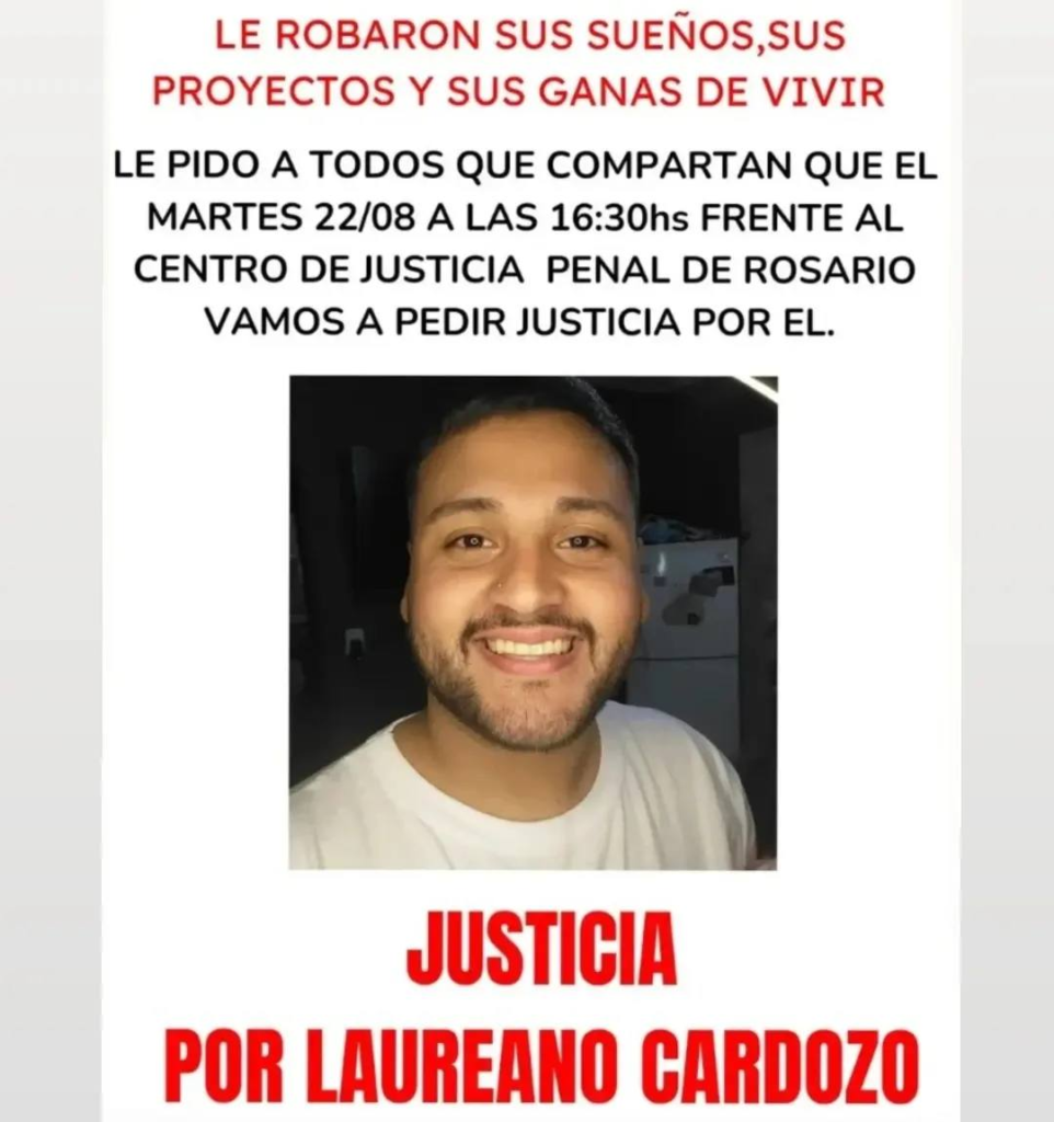 Familiares de Laureano Gabriel Cardozo, el joven asesinado el último viernes mientras paseaba a su perra en la zona sur de Rosario, convocaron a una marcha en reclamo de justicia para este martes por la tarde.