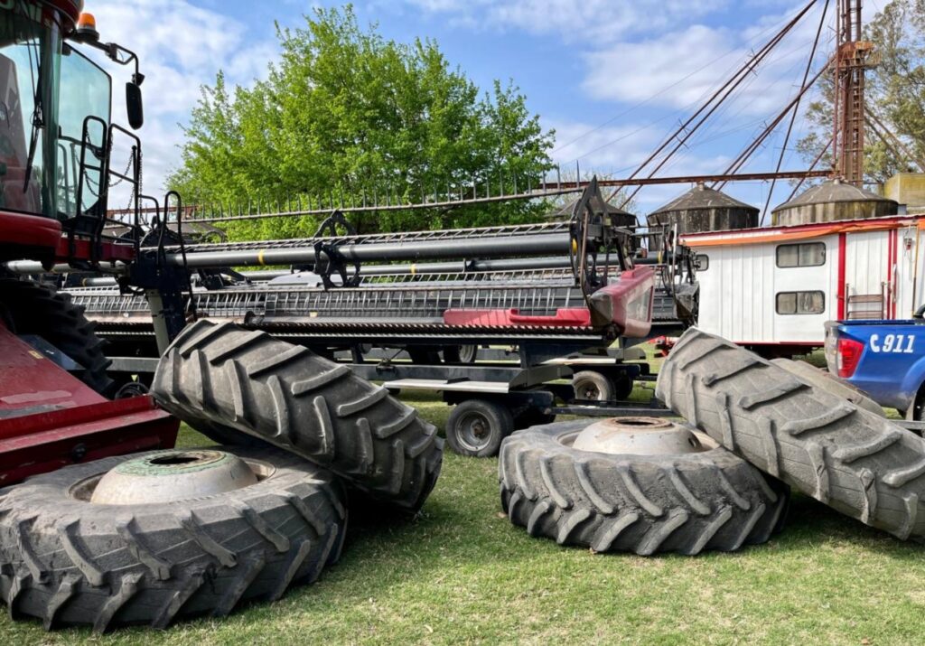 Posteriormente, en la zona rural del distrito Chovet, secuestraron un tanque de combustible de color rojo marca Belén (capacidad 4000 lt.) con 3000 lt. aproximadamente de combustible, con baulera y tanque de agua, un taller rodante color rojo marca Ombú, de 5 metros de largo por 2,10 de ancho con puertas laterales, con gran cantidad de herramientas y repuestos, una casilla Marca el Sol de 7,50 metros equipada con aire acondicionado, televisor, termo tanque, dos garrafas de 15 kg, cocina y 5 camas con sus respectivos colchones; una cosechadora marca Case de color rojo, Modelo N° 8120 LAA4WD, motor marca FPT165487, chasis marca Case modelo AÑO 2012, una cosechadora marca Case de color roja modelo N° 8120 LAA modelo 2012, dos plataforma marca Macdon de 40 pies de lona con sus respectivos carros porta plataforma y una camioneta pickup Toyota Hilux.