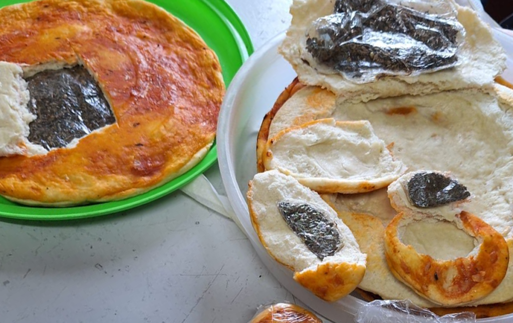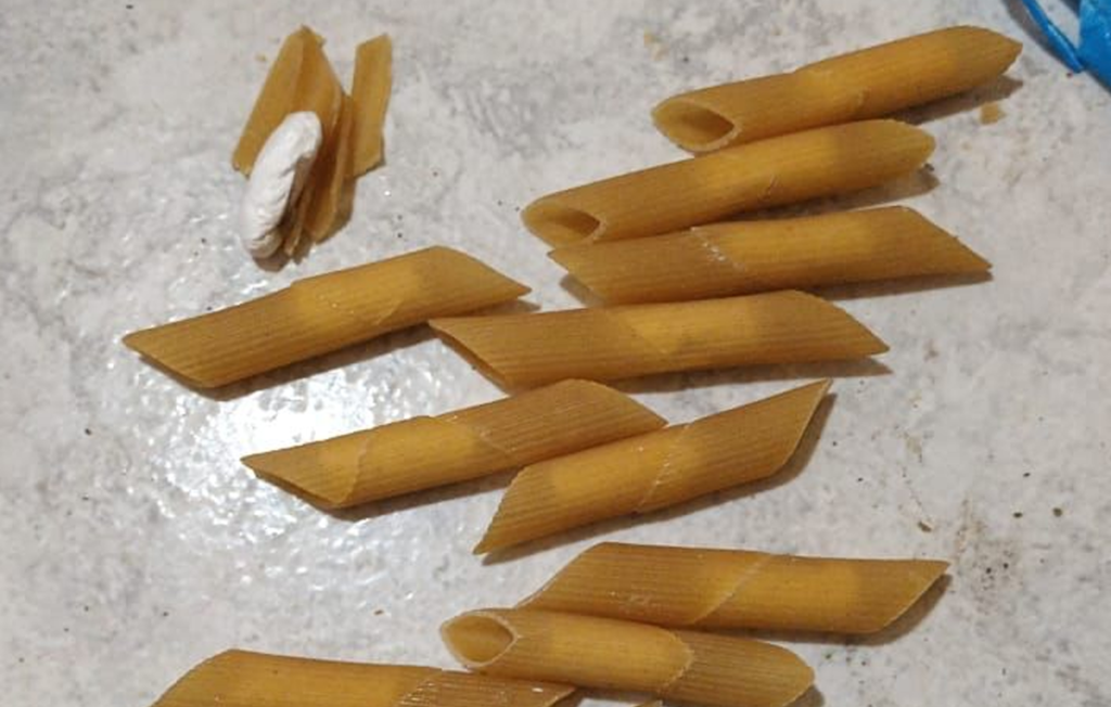 Los agentes penitenciarios suelen hallar material estupefaciente entre las plantillas y las suelas de las zapatillas, en pañales descartables, en fideos tipo mostacholes (foto), en biscochos y prepizzas (foto) y hasta en masitas tipo pepas.