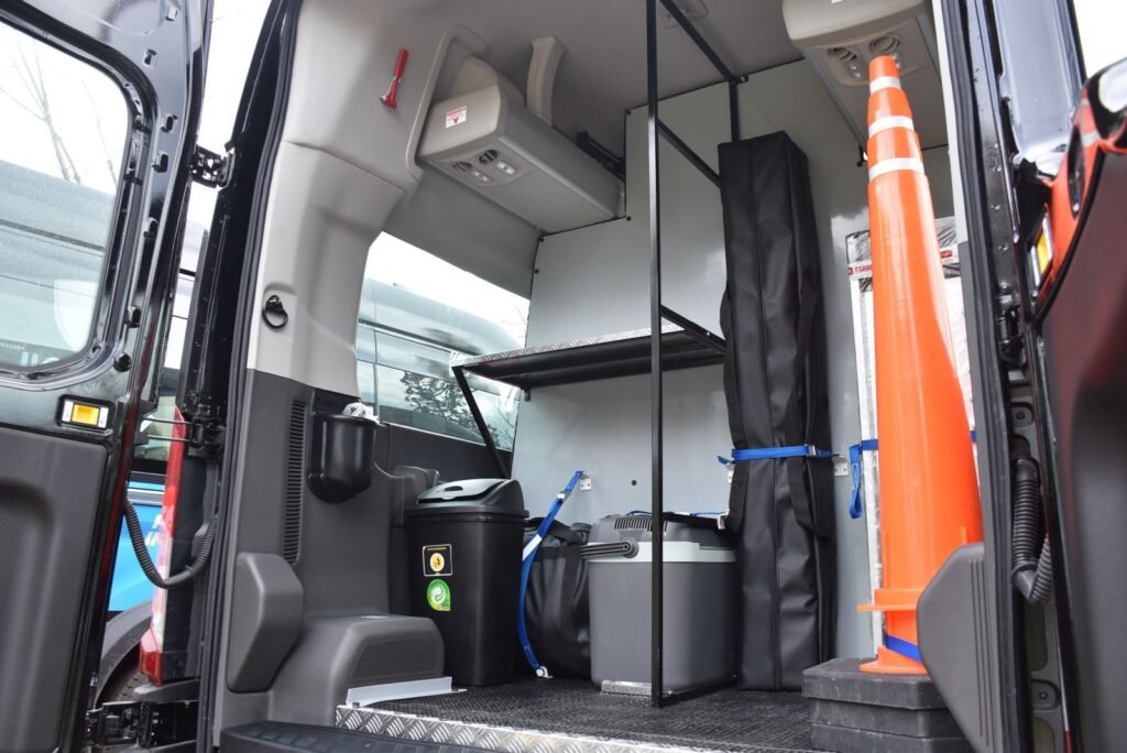 Los vehículos entregados a la PDI -en un acto encabezado esta mañana por la vicegobernadora Gisela Scaglia y por el ministro de Justicia y Seguridad, Pablo Cococcioni- son furgones Ford Transit adaptados equipados con un tabique divisor metálico, aislado y revestido; aislamiento termoacústico; instalación eléctrica independiente; cuatro reflectores LED fijos exteriores (para escena); escalera de aluminio plegable; heladera portátil de 12V; gazebo plegable -negro, impermeable y ploteado-; dos luces de escena portátiles de alta potencia; y contenedor de PVC extraíble para residuos patológicos.