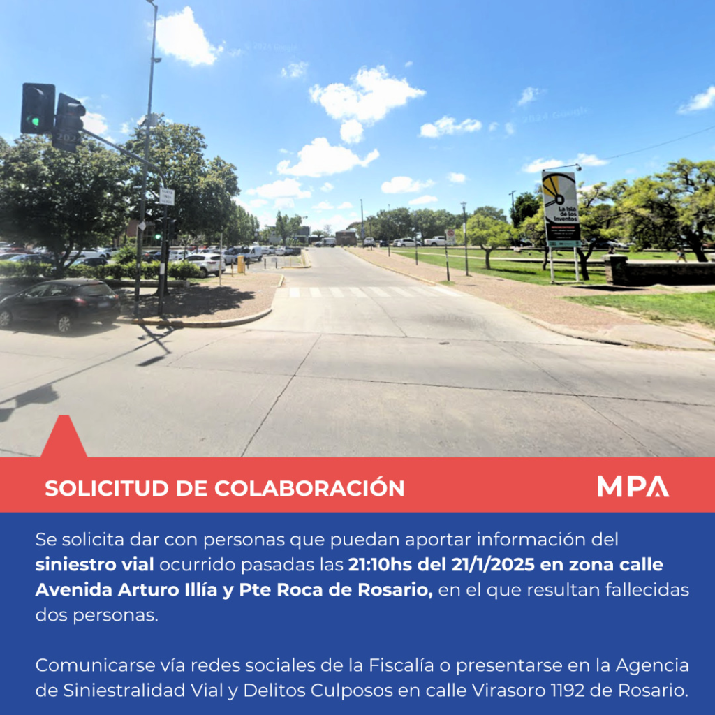 Desde Fiscalía, se solicitó a la población cualquier información que pueda aportar sobre la mecánica del hecho. Las personas interesadas pueden acercarse a la Agencia de Siniestralidad Vial y Homicidios Culposos en calle Virasoro 1192 o contactarse a través de las redes sociales de la Fiscalía Regional 2.