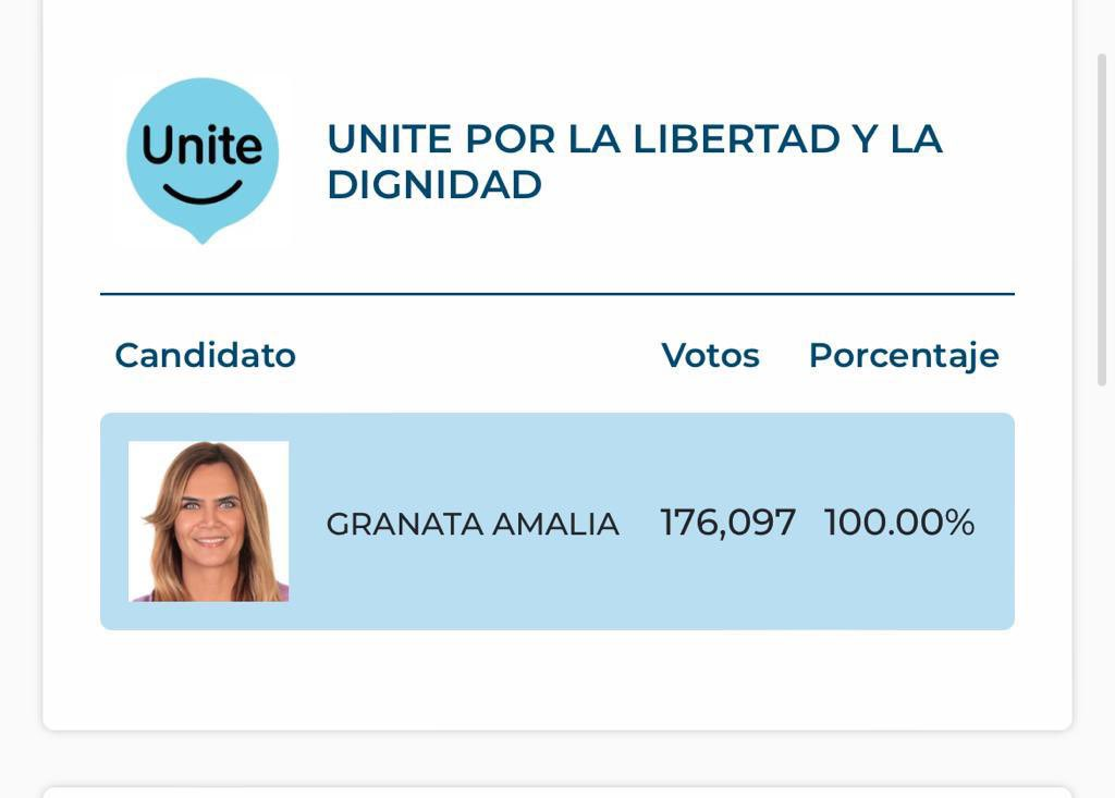 La nómina de “Somos Vida” cosechó el apoyo de 176.097 personas, de acuerdo a los datos del recuento que concluyó este lunes a la madrugada. De esta manera, la diputada provincial tiene un nuevo mandato asegurado en la Legislatura y abre la puerta para el ingreso de sus aliados en el frente Unite por la Libertad y la Dignidad.