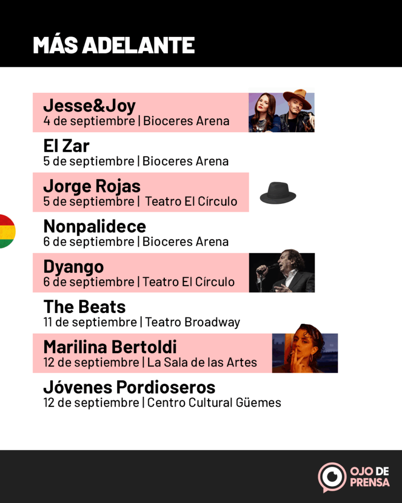 Entre los shows más esperados del mes destacan Bándalos Chinos, Las Pelotas, el homenaje sinfónico a Cerati de Música Para Volar, la potencia de Sara Hebe, el sonido reggae de Dread Mar I, el regreso de Skay y Los Fakires y la energía contagiosa de Cuarteto de Nos. Y como anticipo de lo que se viene, ya genera expectativa la visita internacional de Fatboy Slim, que llegará en septiembre con un set demoledor.