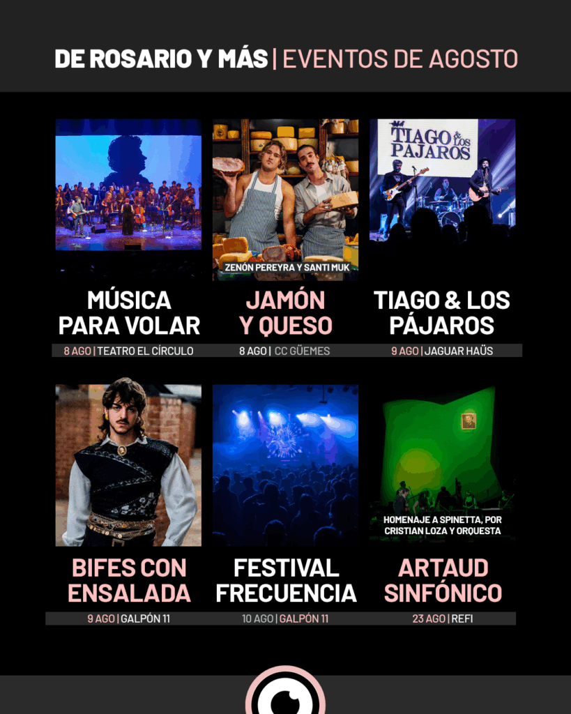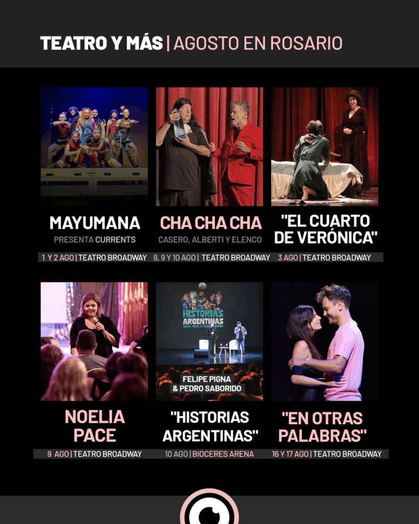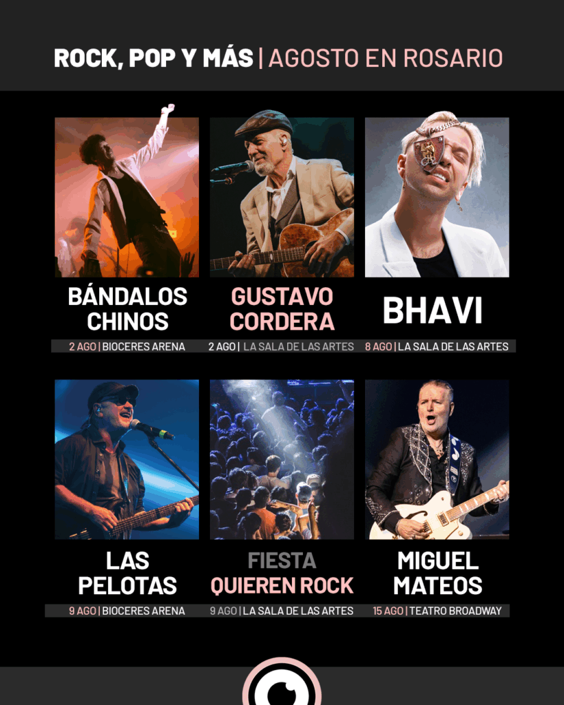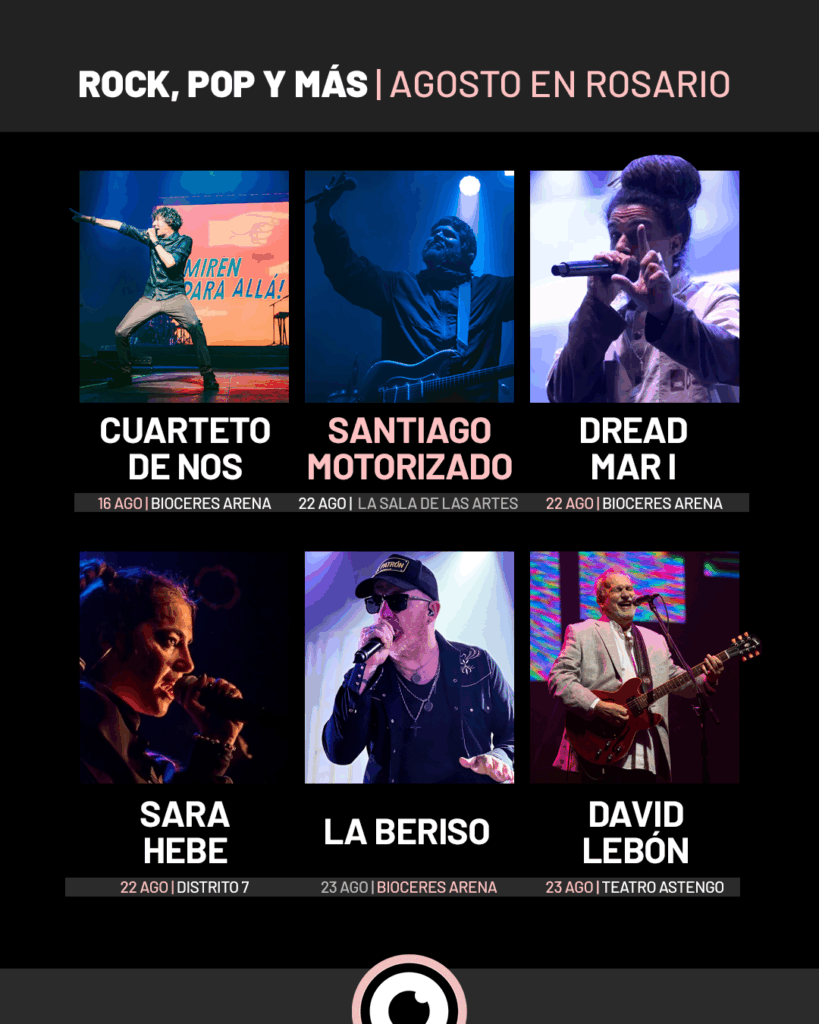 Rosario vive un agosto vibrante, con una cartelera que desborda música, teatro y fiestas para todos los gustos. La ciudad ofrece una programación diversa y de alto nivel que recorre desde el rock, el pop y la electrónica hasta la cumbia, el folklore y el teatro independiente más arriesgado.