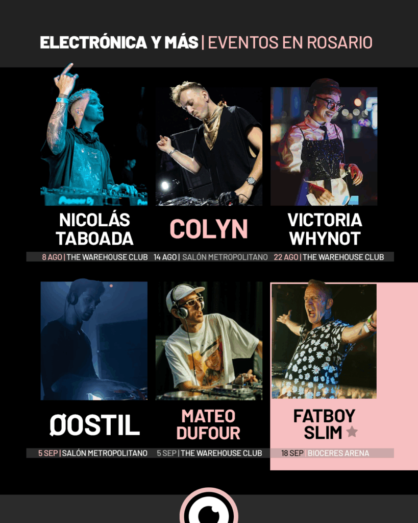 “El legendario DJ británico, pionero del big beat y figura clave de la música electrónica global, llega por primera vez a Rosario con un set demoledor. Ícono de los noventa e inicios de los 2000, Norman Cook —su verdadero nombre— promete un show vibrante y lleno de clásicos. La cita será el 18 de septiembre en Bioceres Arena, en una noche histórica que también contará con la presencia de Beltran (Brasil) y Victoria Whynot (Argentina) como artistas invitados”. Venta de entradas.