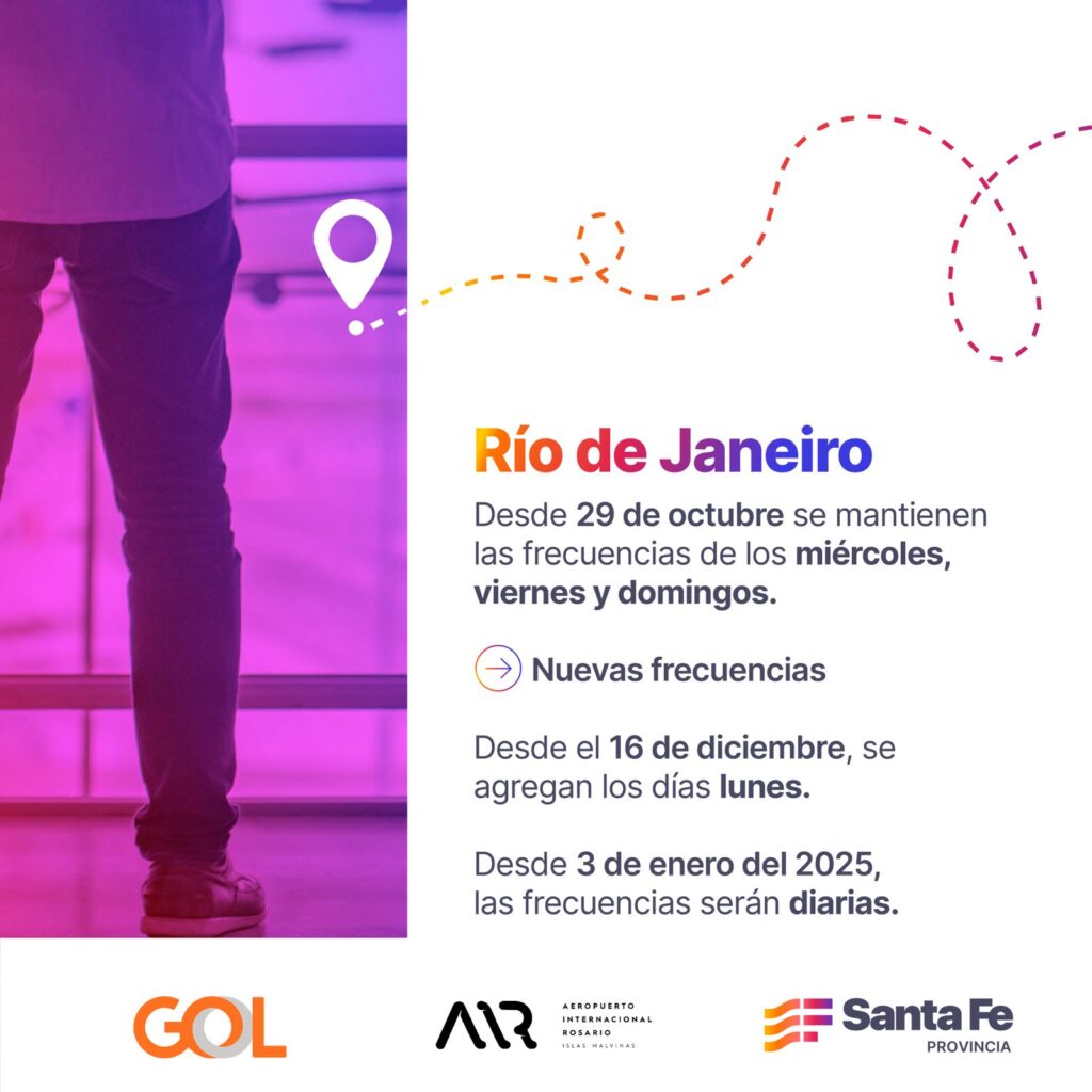 El Aeropuerto Internacional de Rosario “Islas Malvinas” continúa afianzando su conectividad internacional. Además del anuncio inédito del destino Punta Cana, el verano contará con más vuelos a Río de Janeiro y a Florianópolis, serán directos y prestados por la empresa Gol. “La misión de esta gestión es reposicionar al Aeropuerto de Rosario en la escena turística nacional e internacional. Queremos devolverle a la región su protagonismo y potenciarlo mucho más. Sabemos que el turismo significa desarrollo económico, empleo, inversiones y una mejor infraestructura. Estamos potenciando las conexiones aéreas internacionales y gestionando para promover la conectividad interna. Rosario tiene todos los atributos para competir regionalmente y vamos a trabajar incansablemente para lograrlo”, señaló el ministro de Desarrollo Productivo, Gustavo Puccini.