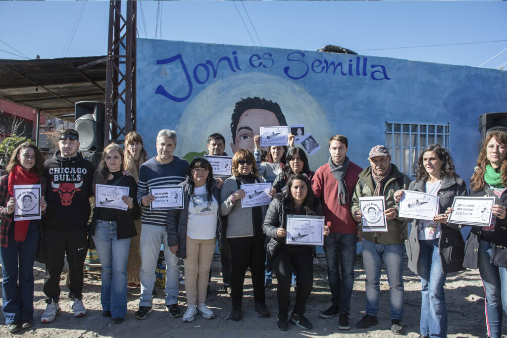 La mamá de Jonatan Herrera, María Elena, agradeció a todas y todos el acompañamiento a lo largo de estos siete años «y que hoy estén acá porque este lugar es muy importante”, agregó. En tanto, la hermana de Joni, Julieta Riquelme, reclamó: “Es necesario empezar a hacer algo para que esto cambie. Porque los muertos nos siguen costando a nosotres”.