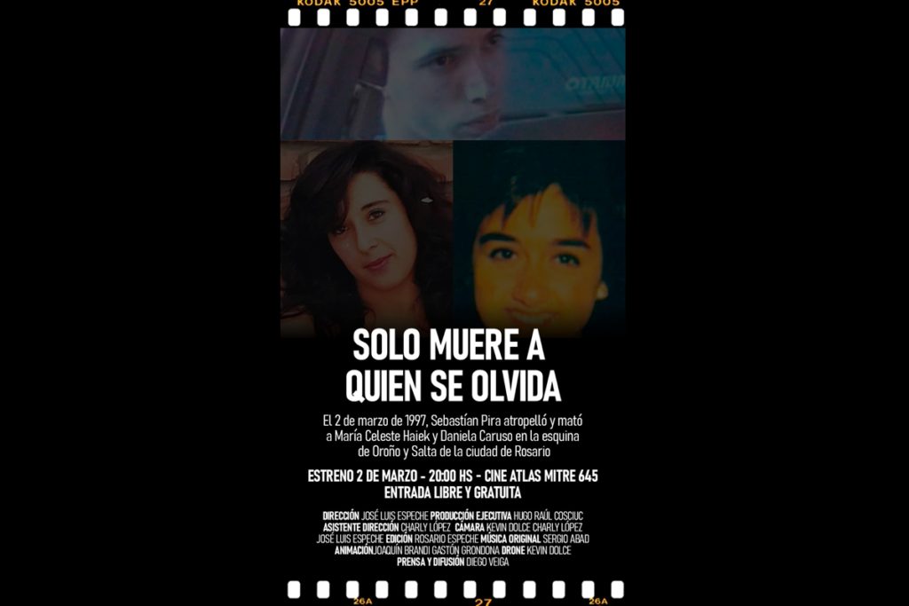 A 27 años de aquel fatídico 2 de marzo en el que María Celeste Haiek y Daniela Caruso perdieron la vida en la esquina de Salta y Oroño en uno de los siniestros viales más trágicos en la ciudad de Rosario, se estrena el documental «Sólo muere quien se olvida», un homenaje a las víctimas del suceso que quedó impune al prescribir la causa y ante la inacción judicial para encontrar al único responsable. Se estrenará este sábado con una doble función en el Centro Cultural Atlas (Mitre 645).