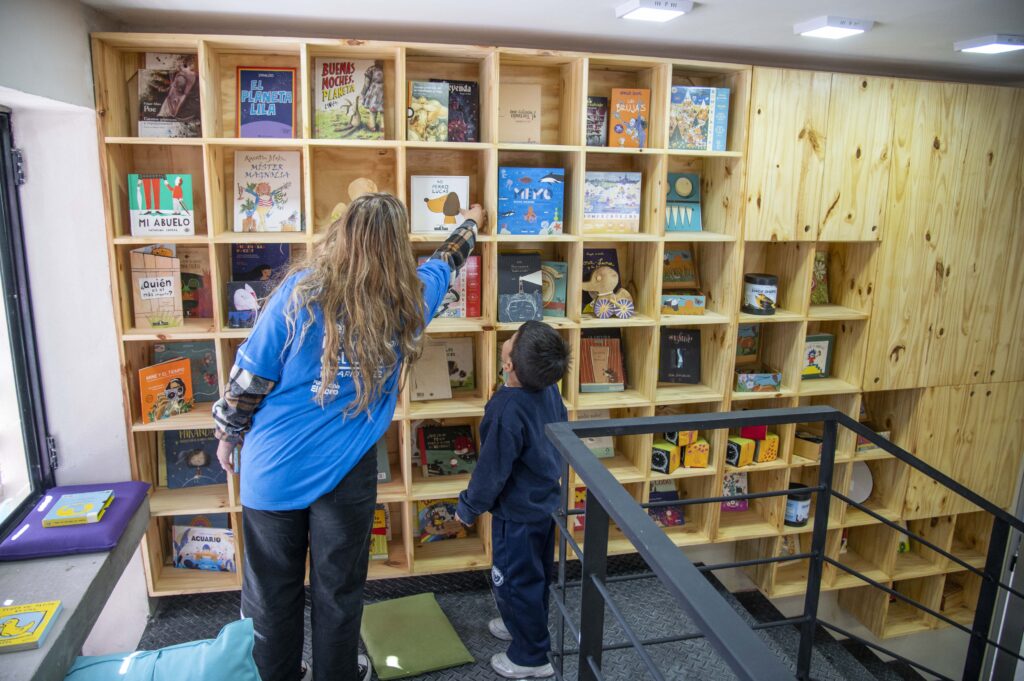 Las reformas en el salón principal contemplaron un dispositivo de biblioteca abierta. Este espacio de lecturas y juegos cuenta con una amplia variedad de libros para niñas y niños, rompecabezas y juegos de mesa. También se llevó a cabo un espacio dedicado a la primera infancia con juegos de arrastre, libros y dispositivos lúdicos.