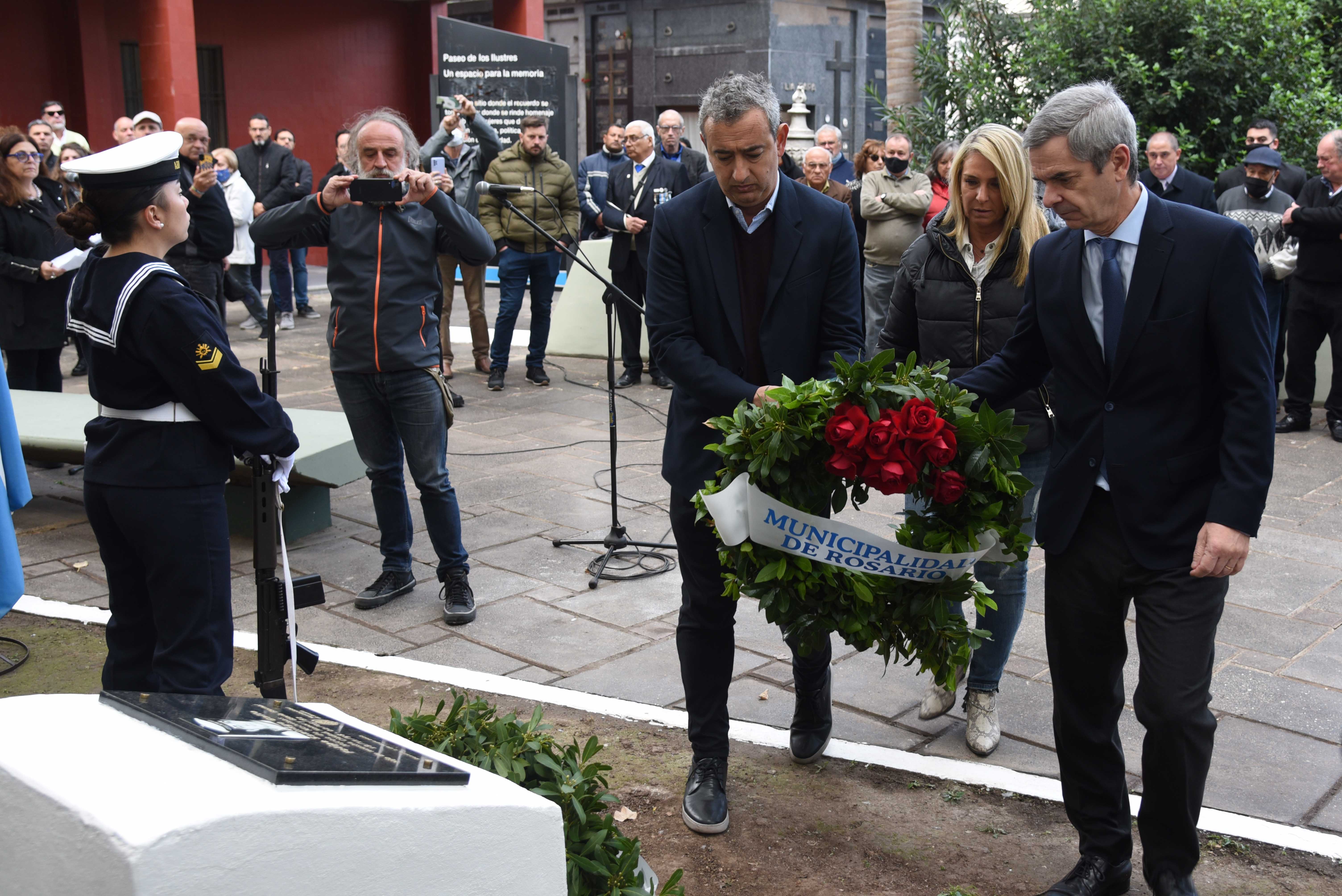También se hizo presente una formación de la Armada Argentina a bordo del buque de guerra King, cuyos integrantes rindieron tributo al joven rosarino, así como el ex cabo Fernando Vitale, quien a bordo del patrullero ARA Piedrabuena tuvo la misión de rescatar a los soldados del buque que flotaban a la deriva en balsas en el Atlántico sur.