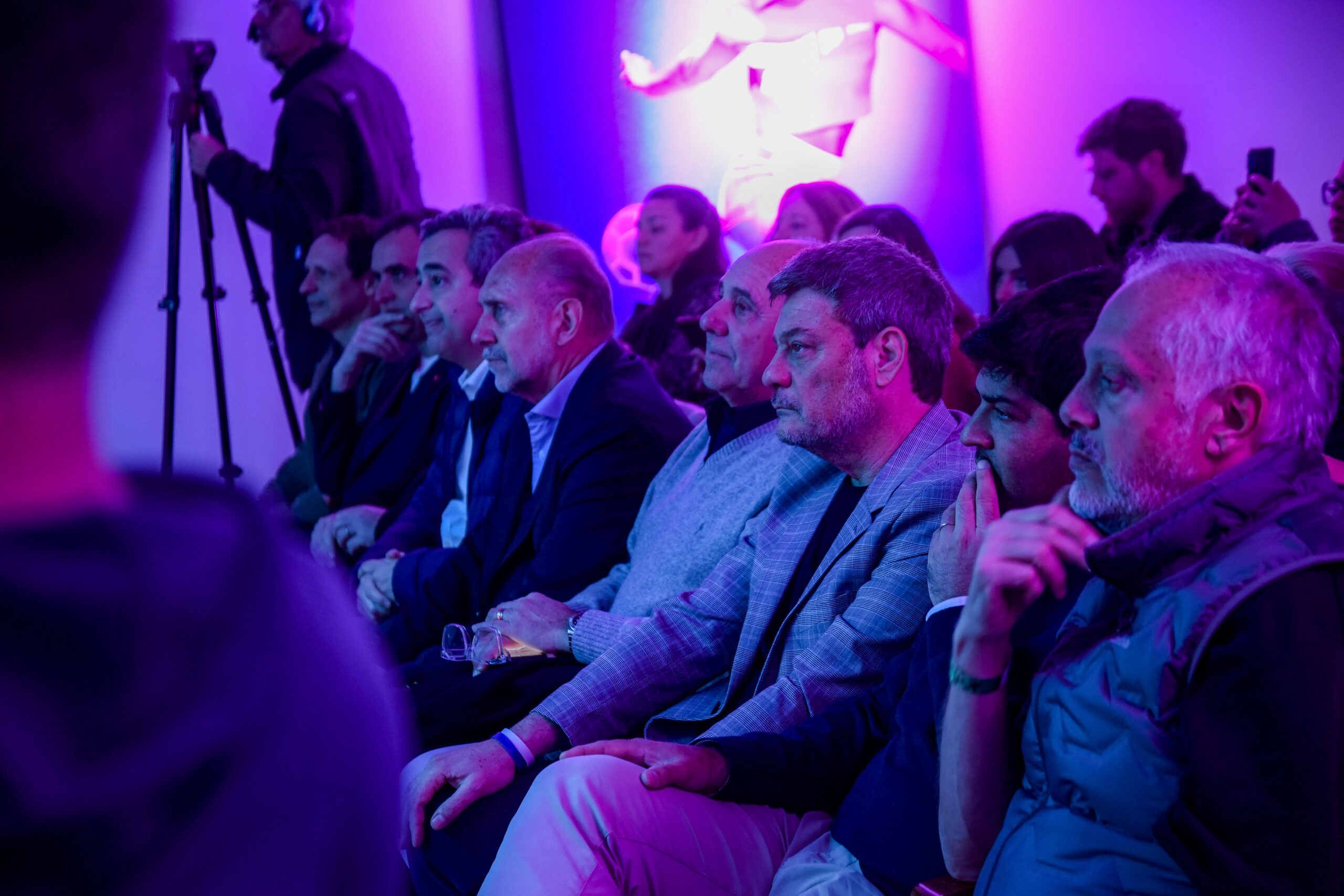 En la primera fila compartían la fiesta por el lanzamiento de la serie de shows en Rosario, el gobernador de la provincia Omar Perotti, y el intendente de Rosario, Pablo Javkin.