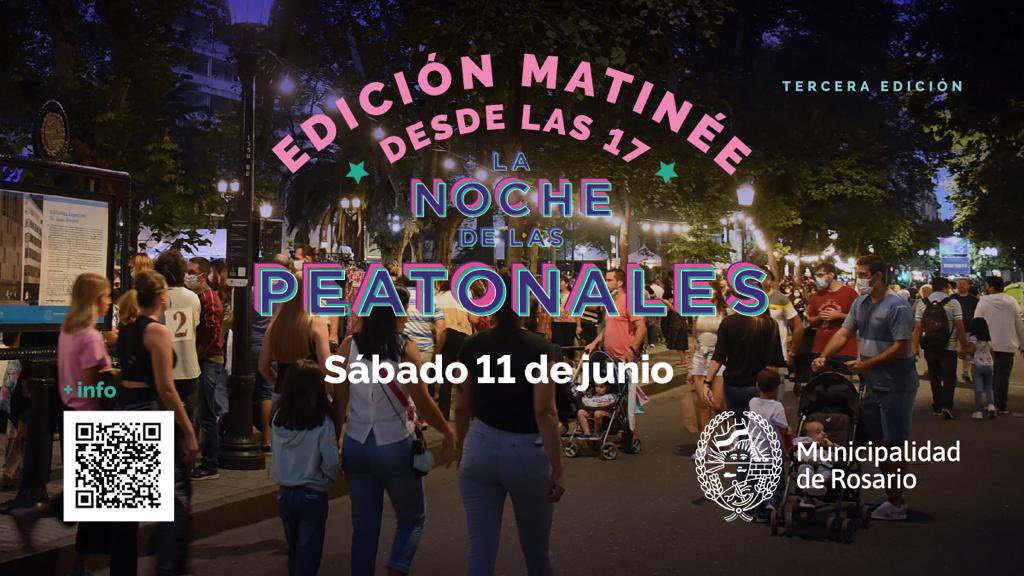 Noche de Peatonales es una iniciativa organizada por la Municipalidad de Rosario que se lleva adelante sobre peatonal Córdoba, desde Moreno hasta Laprida, y en peatonal San Martín, desde Santa Fe hasta San Juan. La primera jornada se concretó en septiembre de 2021, en tanto la segunda edición tuvo lugar en marzo de este año, ambas con gran convocatoria y aceptación de vecinas, vecinos y visitantes.