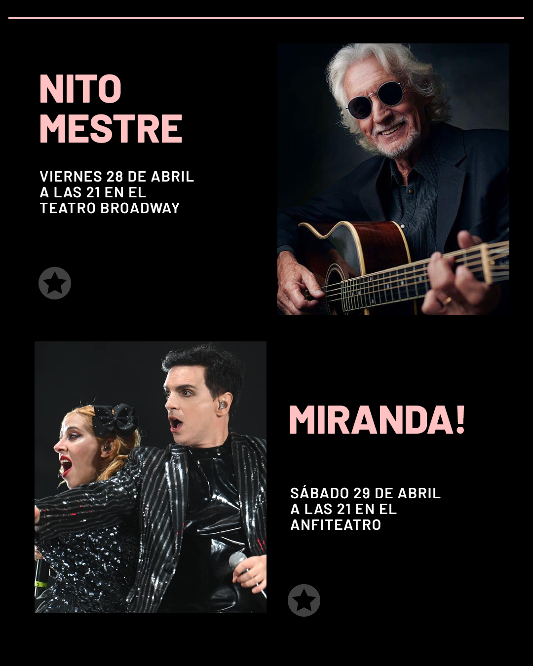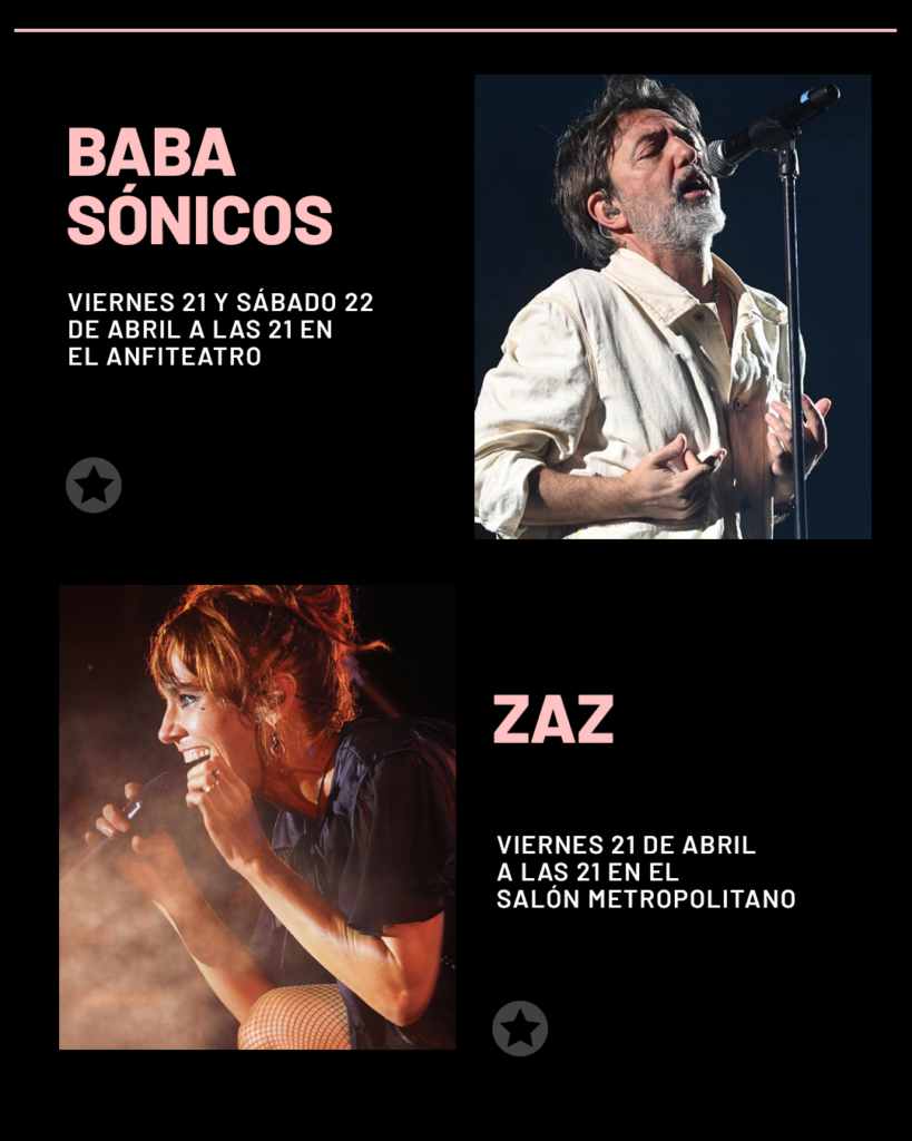 Babasónicos y Ciro y Los Persas por partida doble con localidades agotadas, el renovado dúo pop Miranda!, los raperos Duki y Dillom la misma noche de cierre de abril en distintos espacios, la francesa Zaz, el eterno Nito Mestre y el cantautor español Alejandro Sanz son algunos de los conciertos que sobresalen en la vasta agenda de actividades culturales en la ciudad.